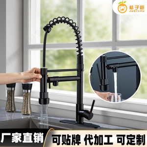 跨境厨房弹簧抽拉水龙头旋转冷热净水直饮双用单孔混水阀龙头批发