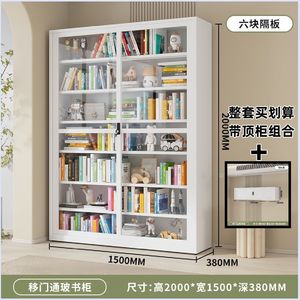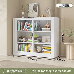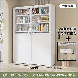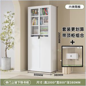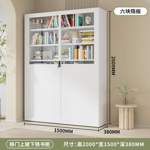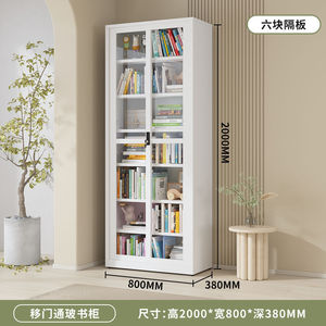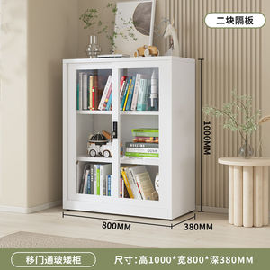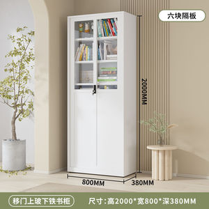 钢制移门书柜推拉门家用文件资料文具手办展示收纳柜铁艺书架带锁