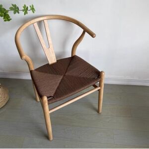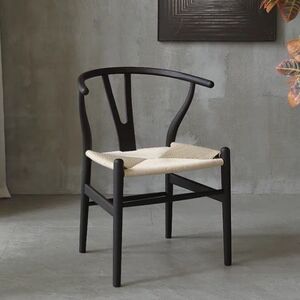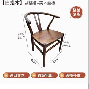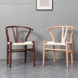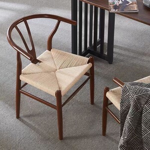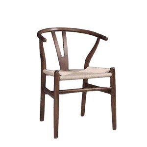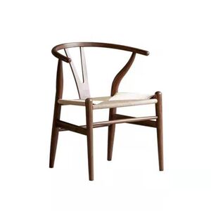 中式Y椅带靠背餐椅茶桌椅原木民宿圈椅休闲绳编扶手椅子西餐厅Y椅