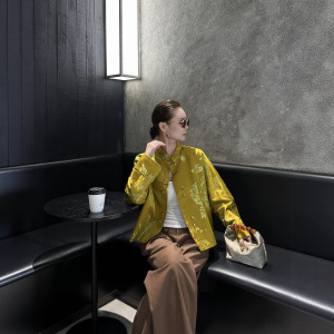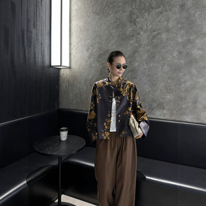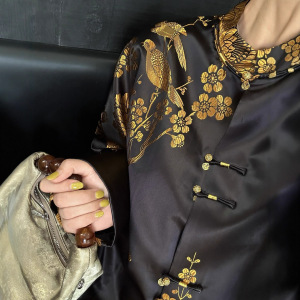 南油重磅桑蚕丝老缎新中式外套新中式国风时尚气质盘扣立领上衣女