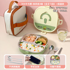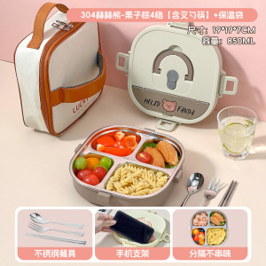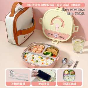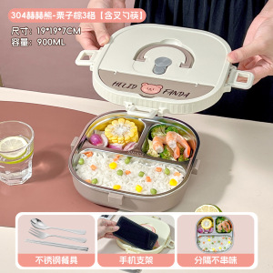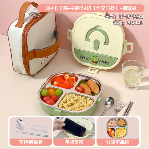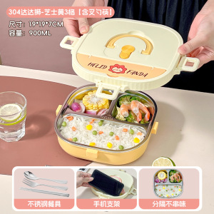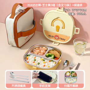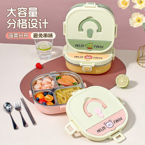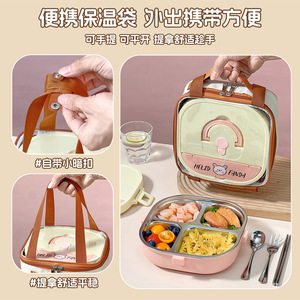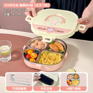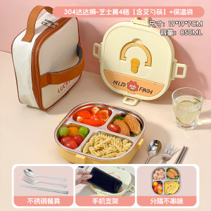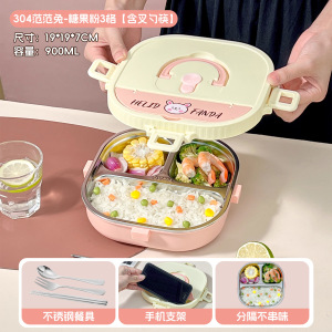 小学生专用饭盒卡通304不锈钢分格餐盘便携食堂打饭方形午餐盒