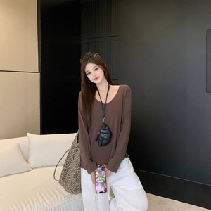 2025年秋季新款长袖U领宽松显瘦基础款慵懒感T恤上衣