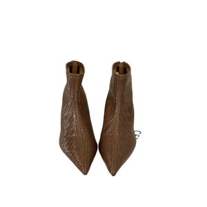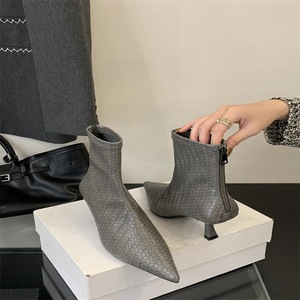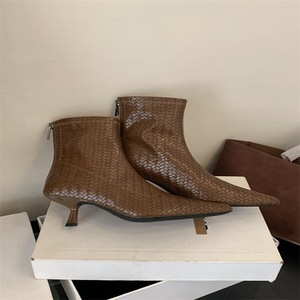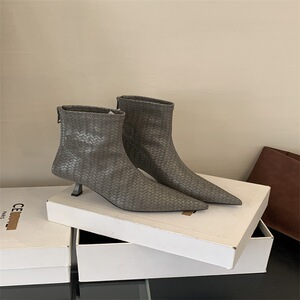 2025秋冬时装尖头编织宽筒短靴女低筒靴法式复古显瘦细跟单靴