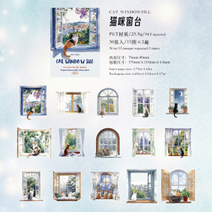 陌墨 PET白墨贴纸包 窗边的我们系列 复古ins风手帐DIY造景装饰贴