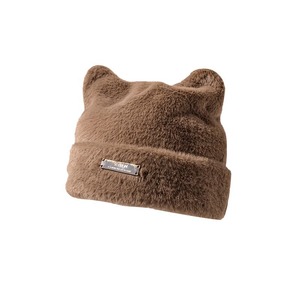 秋冬季韩国新款猫耳朵毛绒毛针织帽毛线帽子女时尚百搭帽潮毛绒帽
