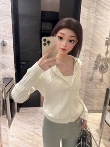经典老钱 Ral*早秋连帽绞花针织开衫修身显瘦