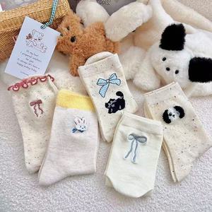 20款组合】白色袜子女中筒春秋款ins百搭蝴蝶结点子耳边日系可爱