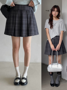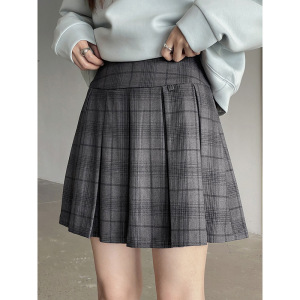 【伦敦书店旧梦】歌铭复古格子a字百褶半身裙女秋季新款短裙N500C