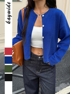 跨境 欧美Y2K辣妹纯色纽扣长袖衬衫毛织女装2025秋冬亚马逊独立站