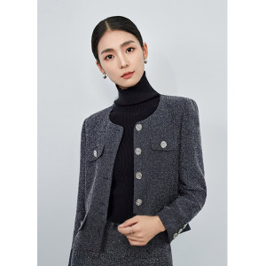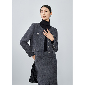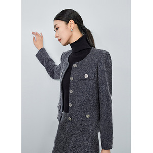 小香风气质通勤羊毛呢短外套女2025秋冬季新款圆领长袖小个子上衣