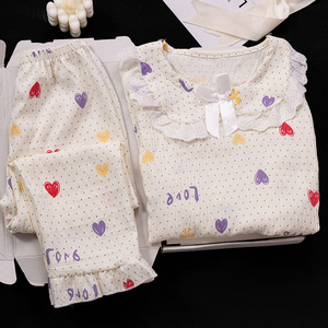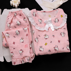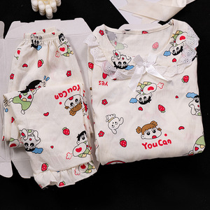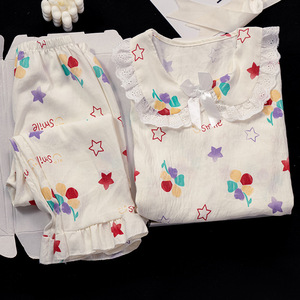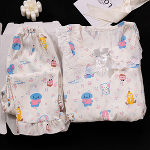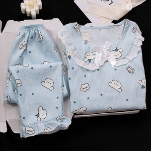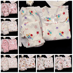 春秋季新款儿童长袖薄款宽松透气卡通女童居家空云朵棉睡衣套装夏
