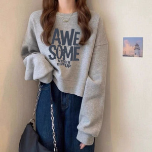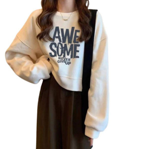 宽松圆领套头短款卫衣秋冬长袖上衣女高腰显瘦小个子春秋薄款