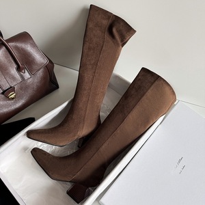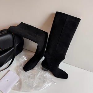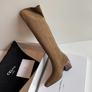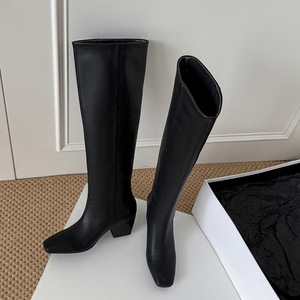6CM黑色时尚不过膝高筒长靴英伦风百搭方头粗跟一脚蹬显瘦骑士靴