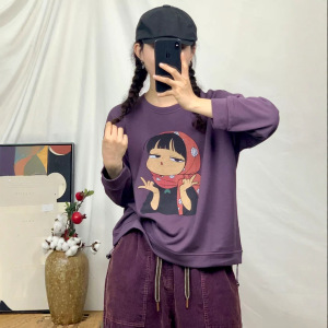 卡通女孩卫衣女 2025秋新款韩版宽松休闲下摆抽绳长袖上衣 2512