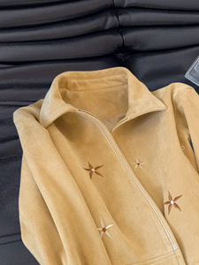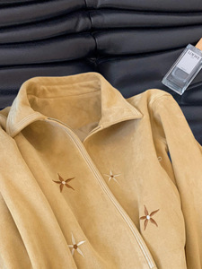 美式复古风植绒鹿皮刺绣翻领夹克女秋季慵懒松弛时髦短款外套上衣