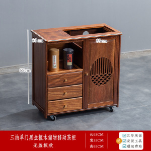 【黑金檀木】三抽茶水柜+带盖板