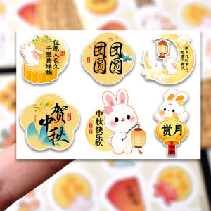 节日快乐中秋月饼礼盒贴纸点心伴手礼标签小贴画外包装不干胶装饰