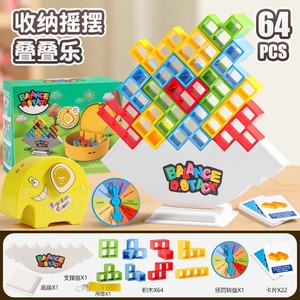 跨境儿童摇摆叠叠高俄罗斯积木方块平衡叠叠乐互动桌面玩具男收纳