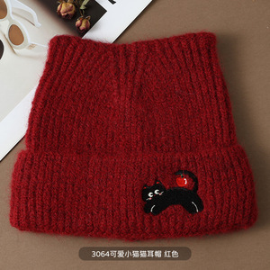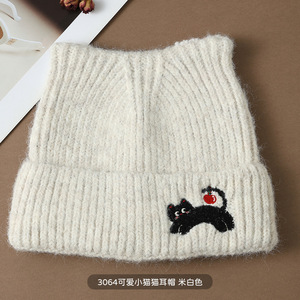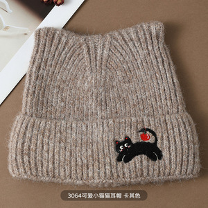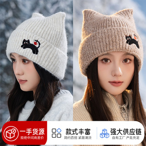 冬季帽子可爱猫耳朵韩版针织帽女显脸小女生保暖针织毛线帽批发