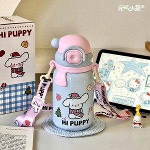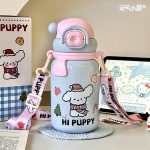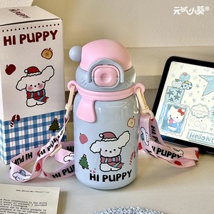 粉蓝泡泡保温杯【550ML】-围脖小狗+背带