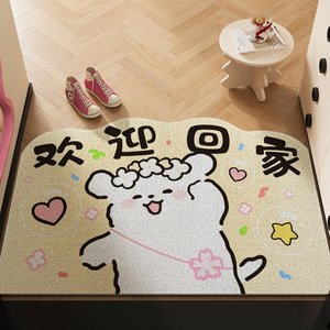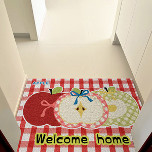 卡通入户门地垫多巴胺格子玄关大门口通用丝圈脚垫子蹭土防滑垫