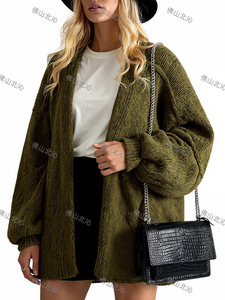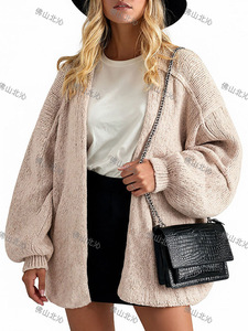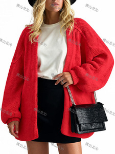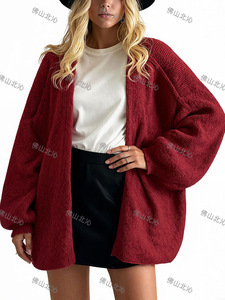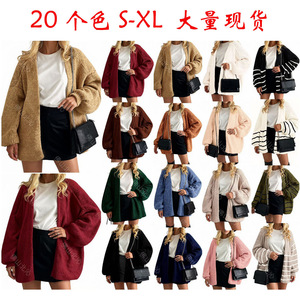 大量现货--欧美新款希音亚马逊爆款宽松针织纯色毛衣开衫外套秋冬