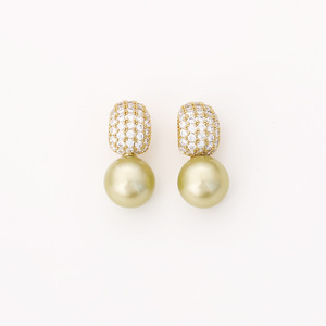 奶油绿色珍珠锆石耳钉(加厚真金保色)