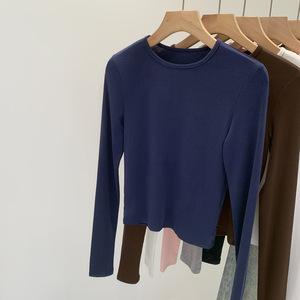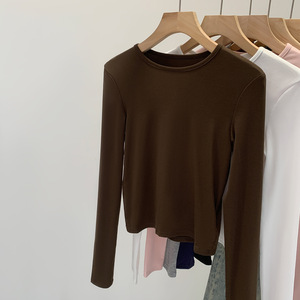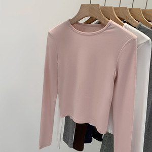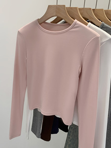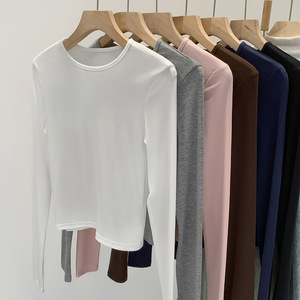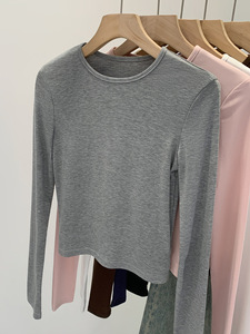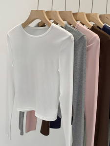 莱赛尔天丝超好看圆领长袖T恤女秋季2025新款修身显瘦打底衫上衣