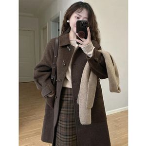 反季咖色牛角扣加厚呢大衣女2025秋冬新款小个子加绒呢外套赫本风