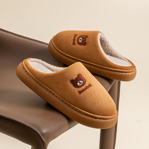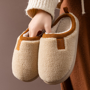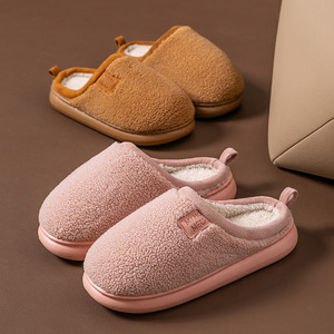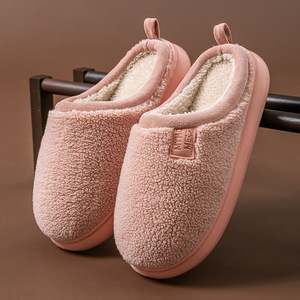 冬季羊羔绒棉拖鞋女室内居家防滑加绒保暖情侣毛毛绒简约棉拖男款
