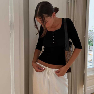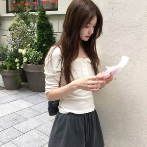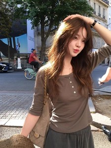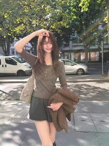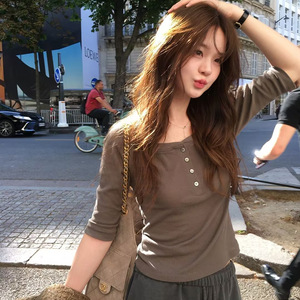现h韩国东大门同款25年早秋vegetable半开领修身显瘦七分袖打底衫
