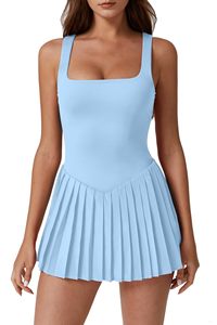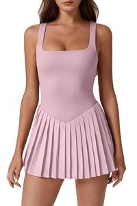 跨境新款女式方领网球裙褶皱无袖内置短裤高尔夫运动连衣裙带口袋