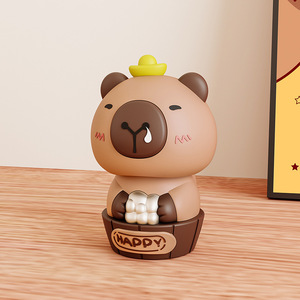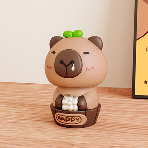 太阳能小水豚点头摆件汽车创意熊卡通摆件光能驱动前后点头玩具