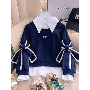 女童时髦卫衣秋装新款儿童设计感上衣韩版女孩假两件衬衫洋气春装