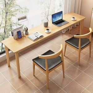 家用双人书桌桌子靠墙窄桌子长方形办公电脑桌长条桌实木腿工作台