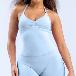 希音爆款瑜伽背心无缝挂脖露背女运动背心女瑜伽服上装运动背心
