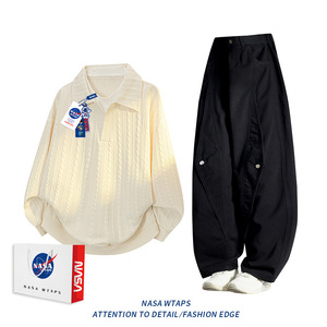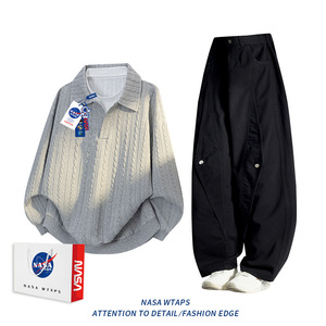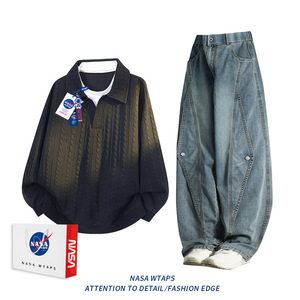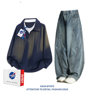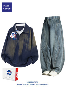 NASA ABOUT美式假两件polo衫卫衣牛仔裤套装男款秋季潮休闲两件套