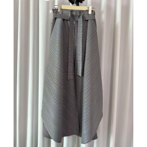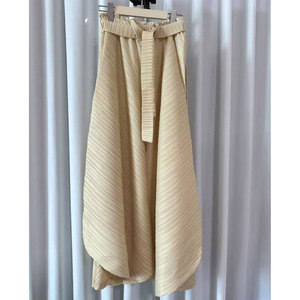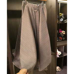 高级感纯色不规则松紧腰系带休闲气质百搭显瘦宽松褶皱阔腿裙裤女