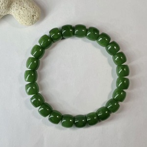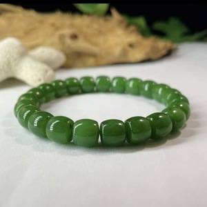 天然和田玉俄料老坑碧玉珠子满绿8mm直切玉手串手链素圈单圈工厂