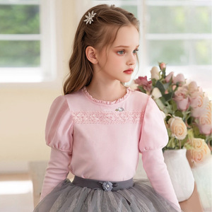 HelloKitty凯蒂猫女童秋季打底衫2025新款花边蕾丝点缀中大童上衣