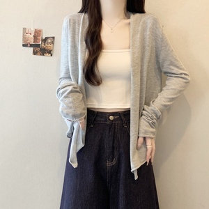 薄款灰色针织开衫外套女2025早秋新款大码胖mm吊带裙外搭披肩上衣