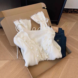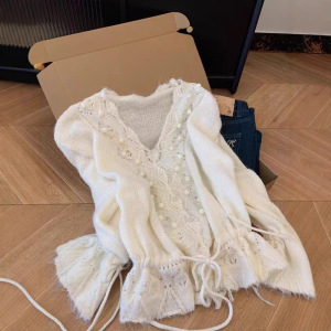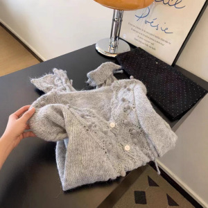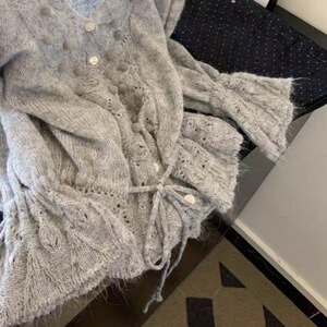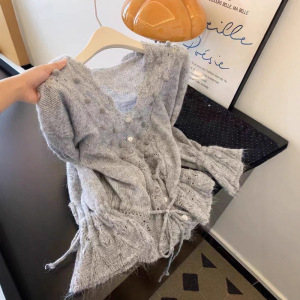 韩系秋季穿搭独特超好看时尚洋气时髦显瘦灰色镂空系带针织上衣女