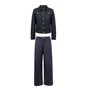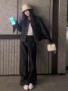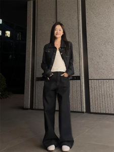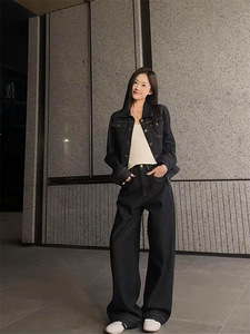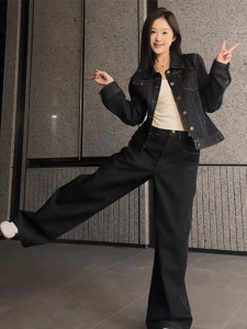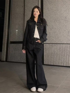 丹宁原色牛仔套装2025超火春装一整套韩系穿搭牛仔外套阔腿裤长裤