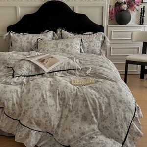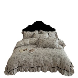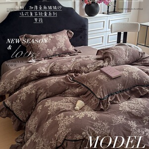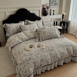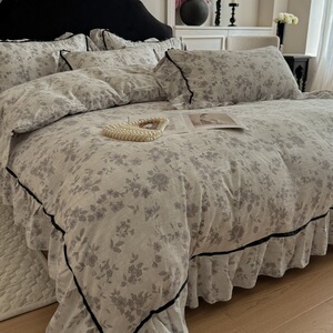 法式复古风加厚双层皱邹纱花边款亚麻四件套法式田园碎花床上用品