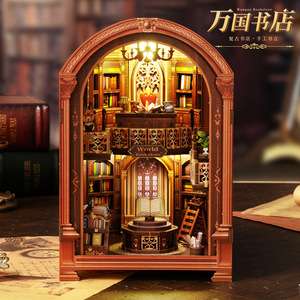 新品万国书店DIY书立diy小房子拼装小屋立体书立手工模型书摆件