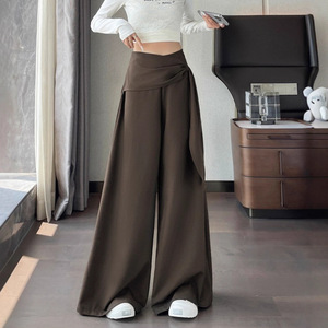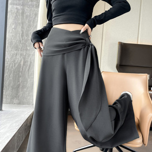 现货设计感高腰阔腿裤韩版系带西装显瘦垂感直筒拖地裤百搭休闲裤