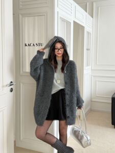 2025秋冬新款跨境外贸大版显瘦针织开衫女宽松慵懒风时尚毛衣外套