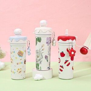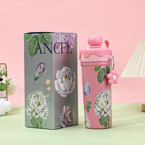 新款繁花保温杯大容量316不锈钢吸管杯带茶仓花茶户外浮球随行杯