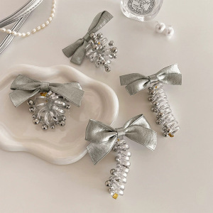 银色蝴蝶结电话线发圈扎马尾发绳泡泡辫编发头绳高弹力橡皮筋头饰
