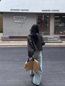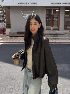 广州黄峥韩系超好看皮短外套女早秋小个子短款减龄皮衣夹克530847